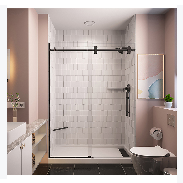 KMRYモダンカスタム8/10MM簡単にきれいな強化ガラス二重スクリーンスライディングローラーフレームレス浴室シャワーガラスドア